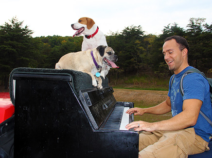 Today was a reminder that I am doing exactly what I should be doing in life and also that I have a ferocious loyalty to express gratitude. We drove to the local park. It feels consistently clear that the people I met in the spot where I create music... we are supposed to meet. The second couple we met have been vacationing at the park for over twenty years. They had heard me creating music last year and were thinking about how awesome it would be if I appeared again this year. This year we met. They used the now most common word to describe the Traveling Piano experience in nature... "surreal." I had some deep personal discussion with both couples individually. They were consciously aware of their spirituality and a relationship with Jesus Christ. It came up in conversation both times almost instantly but with totally relief... not as in a need to express God's message. It was simply clear that we all had the same feelings about life and how to live it. What was interesting was that as I have become clear about having a personal relationship with Jesus Christ and... that it is no one else's business but mine as in the word "personal," so it is with the bible and people's relationship with the book. It is personal. It is meant for personal use, individual interpretation. Some religious people teach their own interpretations of the bible when they should be teaching people how to interrupt it for themselves, and how to accept all individual interpretations with respect. These chance meetings, I just love them. The first couple had made a random stop off the road to stretch their legs on a long drive from Pennsylvania to Norfolk, Virginia. Later I met a very interesting woman in her late seventies originally from Luxembourg. She was there through world war II and remembers the morning she woke up to look out her window to hear and see war planes flying overhead and then the tramping down the street of troops entering into her town. I was going to record music today but was too involved with my music in the moment to think about saving it for the future. Again as been happening more frequently, while creating music my friend Paul appeared in the distance, waved and then disappeared while walking down a path with his dog Molly.