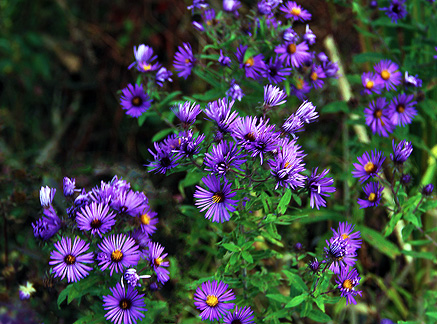It is so disappointing when I have relationships in life that are very intimate and personal, that I think will exist forever, and they end. Sometimes its my fault, sometimes the other person, sometimes a little of both. The woman who lives across from where I am staying, now in her 50's she has never grown up emotionally. As a child she only knows to scream and shout, hit and run, instigate and insidiously antagonize. I've written about it before concerning her and other neighbors... there are several classic backwoods rural family feuds going on where I have been staying and she is at the core for it all. She has never been trustworthy with other people and has been upfront about that fact with me in a very entitled way, because we have trusted each other. Thinking her bad character would never come in my direction... well, as I grow up in life I continue to learn this constant fact about people... when someone is hateful, revengeful and dysfunctional with all the relationships in their lives... to think its not going to happen in relationship with me at some point is wrong. I can spend my life walking on thin ice about it, avoiding the traps and potholes, constantly doing damage control and manipulating to keep everything nice... be the "special" one for them in life by embracing and accepting everything about them but eventually... the dysfunctional person eventually always affects my life and our relationship... not in a good way. It happened today with a confrontation that ended up with the police entering the picture. She called them thinking I would be scared but I was so relieved because... she was too stupid to realize that she was being totally irrational, insane and... if I had called the police it would have looked like I was instigating. Plus now there is a record of her insanity and the police gave me some tips on how to handle her. The problem... it shut me down emotionally for the entire day. I began to really dislike all people because of one. I started to bring all my fearful journey issues about relating with people into play in negative ways. It was good to end the day and go to bed. The wild New England asters I took a picture of for today (they go by many different names) one of my favorite wildflowers... I have a mommy attachment to them, lol... an emotional memory attachment relating to my mom.