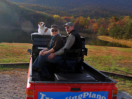 Interestingly enough, I finished creating a picture collage of "buddies" and then drove to the park. As I pulled into the parking spot three old buddies arrived from a walk up the path. We had an exchange and later one of the guys came back with his wife. Meanwhile I had a few other interactions with people. One couple was coincidentally from Pasadena, Maryland where I will be traveling to later in the week to get a new truck cover made for the piano. Mo's ear is driving him crazy, he's got wax or an infection in it so I need to get some peroxide or something to help him out. The autumn season has a nostalgic feel to it for me and these days I'm feeling very nostalgic for a secure of a place that is my own to be live in and call home. The priority for my life is to get outside with the truck and create as much music and continue interacting with people as I do. I've been very fortunate to be staying where I am, thats an amazing miracle for what it is. If I was constantly traveling as before it would not be fun because, well first I would not be traveling... the truck would have died by now if I had been on the road for all of this last year.