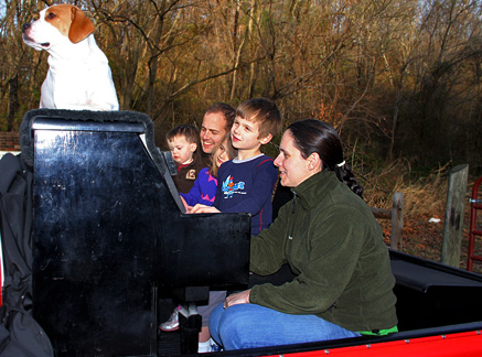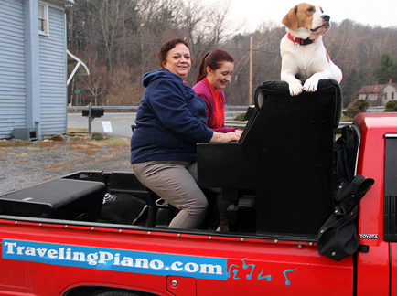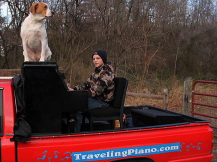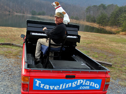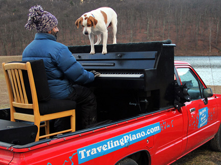 There is no performing or entertaining with the Traveling Piano. People find Piano Dog Mo hanging out on top of the piano while I am creating improvisational music from the back of the pickup truck. It all happens through synchronicity... in the woods, by a lake, on a beach, a city street, on top of a mountain, in a neighborhood driveway... literally there have been hundreds of unique places and environments where people find us. The spontaneity that ensues creates a relationship. Everyone willingly participates via the piano seat. It is a safe space. Friendship and respect materialize with trust that happens through the language of music and one-on-one relating. Sometimes it is only for a minute. One minute is enough. The experience without question creates a "wow" factor for everyone and especially for people who have never played with a piano... do not think they can play... or who have been psychologically damaged from music lessons in their early years. The Traveling Piano has a one hundred percent success rate in creating wonderful and often life changing experiences through music.