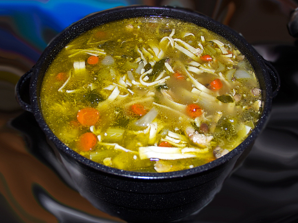 It began to snow today. That was a good excuse to cook six gallons of chicken soup to freeze. I don't know how long I will be here but I'm pretty sure I'll be here at least through the week because the Traveling Piano can no longer travel in bad weather. The new truck cover is leaking. The people who made it reinforced a part in the middle and I think water is getting through the stitching there. It took three rain days, yesterday was a heavy one that really showed the problem. If I had left for Florida or somewhere else before this happened I'd have a big problem. Even though it will be a pain in the ass, I'll be able to make the long trip back to Maryland so they can do whatever is needed. Right now it is the first really big snowfall of the season. There is a spare cover on top of the cover for now. If I was on the road... there would be no extra cover because of so little truck storage space.