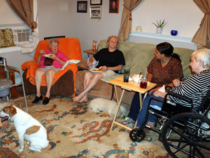 I'm feeling out of sorts... it rains for a short while almost everyday. Its hot and muggy. I've been traveling back and forth from northeast Philly to South Philly almost everyday giving old belongings away and moving career archives into my friend Cindy's garage. Mo and I spent some time with Tina, Cindy's housemate and her family. Lots of dogs and people... Mo was loving it all.