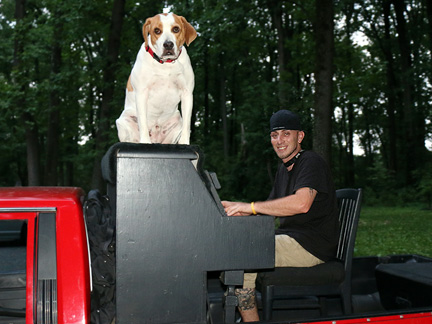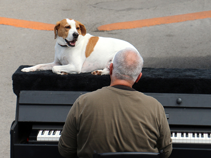 When Piano Dog Boner was alive I was writing a book about him but I have not written so much about Piano Dog Mo that I can remember. We were laying together head to head today our faces less than an inch apart and I watched his eyes roll around in his head completely relaxed, content and trusting. His trust is not in that I will take care of him or that he has someone to run to in a moment of trouble as much as it is in my love for him in general. He's a dog and with my experience and respect for him as a dog, I really can't project very much into all that. But, I do know he trusts me almost one hundred percent in many ways. He has three levels of smiling that is conscious for him. Level one is to show one fang, then there is the two fang smile and then there is the two fang, total bottom grid of teeth smile. It is awesome to see with the look in his eyes. Before I knew him I would have thought that all looked gross. Whenever I was affectionate with Piano Dog Bo, after a time he would always turn the affection into play. With Mo, there is no end to the tolerance of being treated affectionally. I told him the other day that when it is time for us both to leave this earth that I might have to go a few days before him. I'm fairly certain of that at this point.