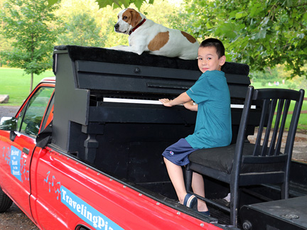 Mo and I took a walk in a different section of the local park and it was like wow! I took pictures for a half hour before realizing the camera card was not in the camera. I'd say about eighty five percent of the people living less than a mile from this park which is almost like a forrest with a river (large creek) running through it, rocks, animal life and many varieties of greenery and a large paved path... people don't even know it exists and have never even been to it. Part of me wishes I would be here to see the autumn leaf colors change because of the many textures, shapes, sizes, tree varieties and shades of color... I'll bet it is beyond awesome every year. Afterwards we headed for the parking lot in the back of a school close to where we are staying so I could get back quick if rain began. Kids hang out there for various reasons and each time more get the courage to come over to the Traveling Piano to check it out.