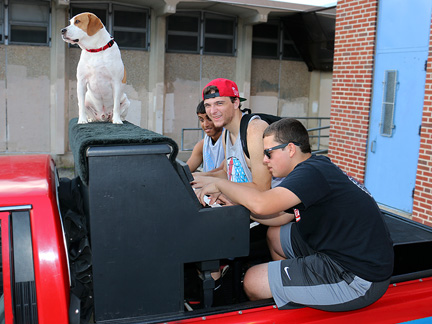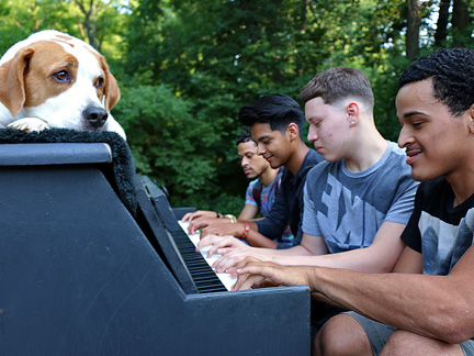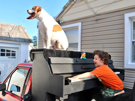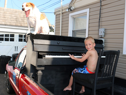 It felt brutally hot and humid out and was supposed to rain but it didn't. In the late afternoon the humidity let up so I went to take a walk with Mo. That never happened. My friend Tina's grandson Timmy was visiting and then Cindy's friend, her daughter Mary was here and then Ryan from next door, today is his sixth birthday... so you know what happened with all that... Musical Fun, Friendship and Respect. Other than that, I processed pictures while going at it full blast with a few people on Facebook about the fact that automatic machine, assault rifle guns have no place in society. I speak as a result of my experiences at Virginia Tech and Sandy Hook CT with the Traveling Piano. There is an implosion happening in this country as a result of a few self-centered, profit seeking business people and politicians promoting division and weapons amongst people. Those who have not been taught to think for themselves or have not learned to think for themselves are being coming indoctrinated with fear and hate. My speaking about it often comes off arrogant, strong or abusive but the fact is I am speaking as passionately as possible. My passion of spirit comes out not only when musically interacting with people, it comes out in relationship to respect for human life, especially for those who cannot speak for themselves, I speak as strong as possible sadness and also anger.