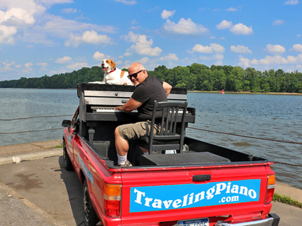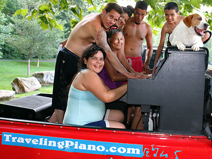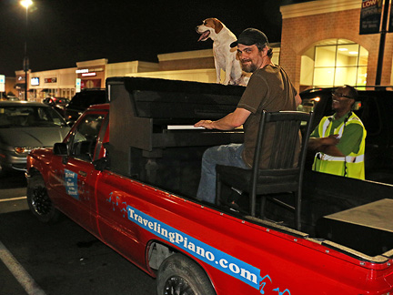 I need to get them onto the piano to share some musical time. Also, if I look at them while I play everything turns into performance which is not what I am about. After some really nice time periods of fun, friendship and respect with people we headed out to the supermarket to get some food and the Traveling Piano fun started again in the parking lot. While driving back to where we are staying I came into more clarity that even though the social environment (laws, fear, police, restrictions, etc...) of todays world has made what I do more difficult than ten years ago... without question people are craving all the aspects of what the Traveling Piano has to offer ten times more today than ten years ago. This is what I am experiencing.
