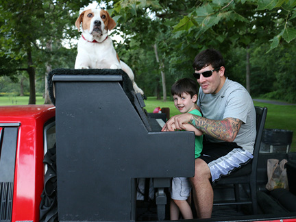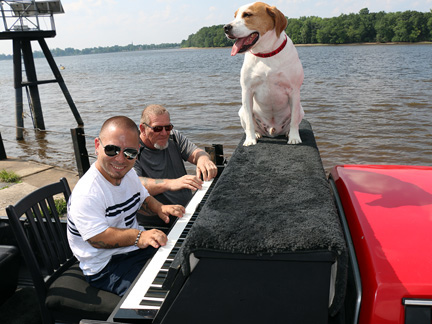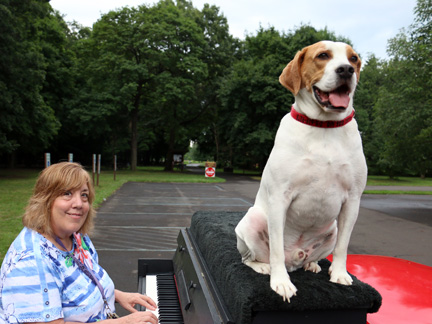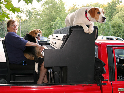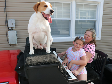 Anyway, rain held off until the very end and then it started to downpour. I was thankful to have made it through but when the drizzle began at the end... I decidedly could not have cared less if I got soaked or if all the equipment got ruined. The fun was more important. When there were pauses in the parade route I invited people along the route to come over and bang on the musical keys to jam with me... very, fun! There were people I've known for almost thirty years in parades and it did not feel like any of us were older. Afterwards I hung out back at my friend Cindy's house with her friend Tina and family. I must say that I had fun today! The best part was not being afraid and to be able to have fun and interact with people all along the route. It was all about Fun, Friendship and Respect... totally! Mo walked back and forth across the top of the piano the entire time. You know... everyone Loved that and him. We were the last as always... it is not the end of the Oreland 4th of July Parade until the piano man and dog passes by... one last time.