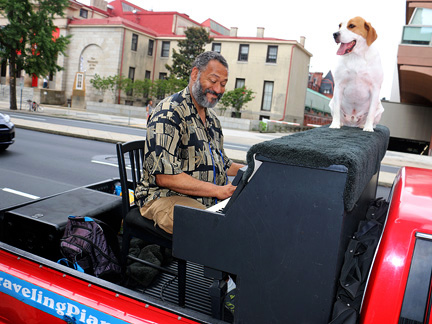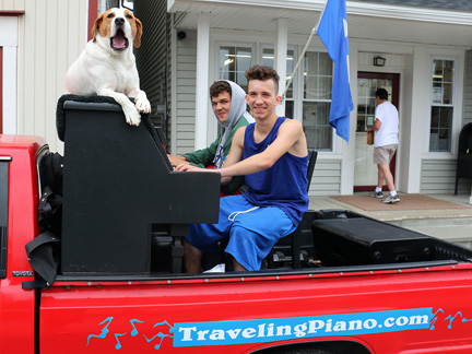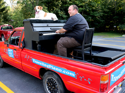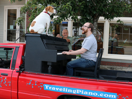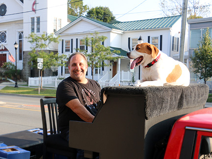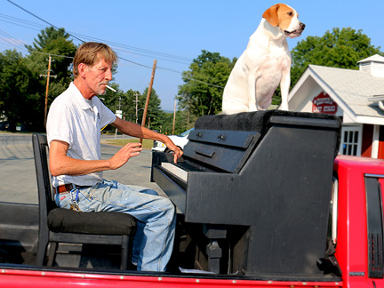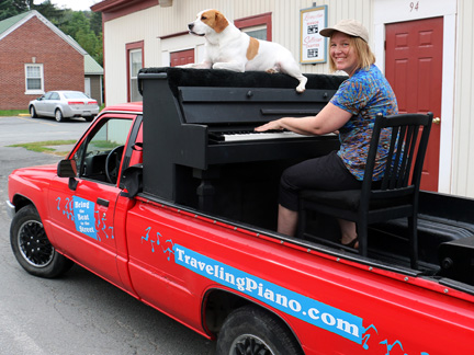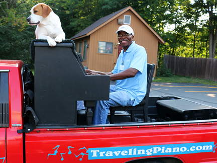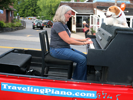 Before going to bed last night a yearning came over me that was so strong I cannot ignore it. I'm getting ready to leave the east coast again and it feels like I will never return or have an opportunity to spend some time in New York city and see some live entertainment, get a sandwich at Carnegie Deli, walk around and soak in the energy, etc... I've been wanting to do it for over ten years. What has been stopping me? Money, arrangements, logistics, Traveling Piano priority, leaving my dog for a length of time. Knowing that I am unnecessarily leaving behind opportunity that is so important to me... that is probably where the anger has been coming from over the last few days. Anyway, back to today. I did a little yard work for a get together that John and Susan are having on Sunday. I stopped at the local Library to meet a woman who is holding a 5k race as part of the towns Labor Day celebration. I decided that if they offered a good attitude as in welcoming my gesture I would create some music for the event.