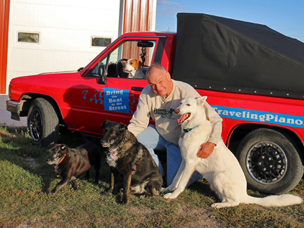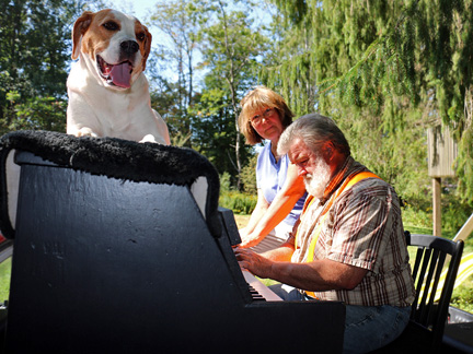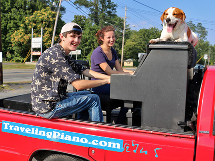 I will need to stay conscious not to feel sad and cry when Mo and I leave Susan and John tomorrow. We will leave New York state with happiness and filled with gratitude. These two new friends have shared their entire spirits for a month with us in every way. They were strangers who invited us into their home who cooked for us, shared their food freely, gave Mo treats, cleaned for us, gave rides when needed... they cared for the Traveling Piano and Mo while I fulfilled my dream of spending time in NYC alone for five nights, found a place for me to stay, shared their family and friends, their eccentricities. I love them because of their unconditional fun, friendship and respect. How could anyone not? The Traveling Piano will leave the east coast headed west once again full of their love so that we can continue to share that love with others throughout the world. They are friends that Traveling Piano Dog Mo will not forget. They cared for him, they played with him, treated him for a week and are the only other people he has ever slept with besides myself! Also, usually I can tell if a stay with someone is on the edge of being too long. I begin to see signs of Mo irritating them for no reason I can see. Its been very rare but I am super sensitive to it because I'm the one they usually get tired of. They show it through the dog. In ten years and staying with over a hundred and fifty people its happened maybe three times. With John and Susan it was great from start to finish and for almost a month!