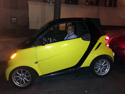 I brought a ticket for a comedy show at night and took Anarug with me. He treated to a vegetarian indian restaurant for dinner which was very tasty except the food was almost too spicy. The comedy show was pretty bad. We did not stay to the end. The performers were creating a lot of screaming and chaos with the word "fuck" was inserted several times into every sentence (that is not an exaggeration) with constant encouragement for me to give feedback that I was having a good time... all to compensate for the lack of quality humor. It was not my thing. I don't want to pay money to force myself into thinking that I am having a good time and to feel embarrassed from performer pressure for not acting like it is happening. The view from Anarug's apartment is nothing but park and water and the Bronx from a distance. This feels strange being so in the middle of what I know as New York City. It was fun to drive around in his little car which makes finding a parking spot anywhere totally easy because he can fit into all the tight spaces that no one else can.