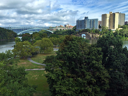 So, John, Anurag and myself, we talked and everything is still iffy as to my spending time in New York City. Anurag lives in the Inwood neighborhood of Manhattan on the northern west tip of the island. Wow, the Harlem river, a beautiful park, nice neighborhood... there was a local restaurant where we were in Inwood, the area was so safe that neighbors leash their dogs outside the local cafe to go inside, eat and socialize without worry that their pets will be stolen or fighting with each other. Proof that pet owner sanity exists in the world in spite of all the self-indulgent worry and over protective measures that have been destroying the fun and love of dog stewardship. Long live empowerment! Many of the apartments are rent controlled in the area so people are living in fifteen hundred a month apartments easily worth six or seven thousand a month. There was gas being sold for $1.87 a gallon in New Jersey. I have not seen that in years and hope that it stays down while I traverse across country once again!