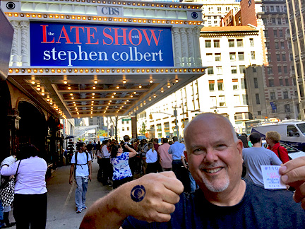 I forget which shows I've been seeing on what days! I saw Avenue Q off broadway which I have been curious about for years and it seemed a bit tired. Still, I'm glad I saw it but also have had enough of puppets! The entire show was puppets. The real excitement for the day was scoring a ticket for the new Late Show with Stephen Colbert. It was the first time I ever stood in line to see anything and it was worth it. The show was entertaining and for free! I realized for the first time what an integral part an audience plays in a television show such as this. It was my first time ever at a taping of a show. I did not know the movie star and politically one of the supreme court justices made an appearance and I never heard of the guest band. The real star of the show was Jon Batiste and Keep it Human the Late Show Band. It was full of an eclectic mix of musical americana, jazz and improvisation. They were just great and I sat right in front of them. A short question and answer period began with Stephen where I was tempted to try for a Traveling Piano pitch but it would have come off as very inappropriate. The whole experience was an eye opener and fun! Never before have I been into audience participation. With Stephen Colbert I was one hundred percent invested in staying connected with what was going on in what ever way was needed to be part of the show.