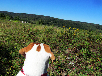 On the way, I stopped at an ice cream stand to sooth my crazy head and the smile from the girl working at the counter along with her brother's upbeat energy... without knowing it they reached deep down into my soul to pull up the Fun, Friendship and Respect needed from within that I was looking for. We had time in that spot and then went to the vet, Joseph A. D'Abbraccio's place and spent a short while with him. After he left a few neighbors came by and we all had some special intimacy with creating music and how I do that. On the way back I stopped at a supermarket to pick up some food to cook for a gathering John and Susan will be having this weekend and then I found a local park with no one around to create some music just for myself. Mo and I took a walk there in a huge open field with mountains as a backdrop.