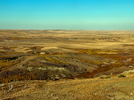 I drove almost 850 miles today. I couldn't take another motel so I drove six hours than purchased one of those six hour energy vials and drove the rest of the way, while wondering if the energy stuff would give me a heart attack. I listened to music on my mp3 player... Keith Jarrett, Donna Summer, Bach, Earth Wind and Fire, Pat Metheny, Rachmaninoff... Once into Montana from North Dakota I wondered if the feeling I get from being in it is made up or real. This is my third time here and every time the feeling of openness comes to me. The land feels more raw than anywhere else, more free. Maybe its because the fencing is different, I don't see the restriction signs and property lines as I do in other states but I am sure they are there. The entire ride I passed two cars and less than fifty passed me. Is that crazy or what? Do you know the feeling of driving forever down a road alone with wide open nature no other cars on the road... on a hot, dry, sunny, windy day with the car windows down? I wish that for you. Hot... it was ninety six degrees in Wolf, Montana as I drove through at 5pm. That is a mighty damm hot autumn day!