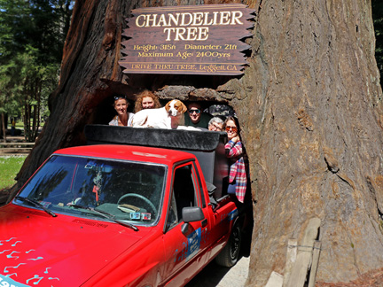 Instead... there was a huge tree you can drive through which I saw when I first drove into this area. There is a hole in it so large you can drive a vehicle through it. The tree has been in my minds eye since seeing a picture of it as a child. I'm told there are several in the giant Redwood Forests of California. It dawned on me to create music while driving through it and then I thought about video taping it. Wow, was that fun! I found a woman with her daughter from Bellingham, Washington and mom from San Fransisco. The woman was willing to drive while the daughter videotaped. And then a couple visiting from New Zealand got into the action. Everyone got on the truck and then I drove them all through the tree while they played music. It was a hoot. I met other people and it became a Traveling Piano with people in the tree picture shoot for hours. I so much did not want to have myself videotaped because with not a clear head this morning, I forgot to shave and was wearing a teeshirt so large it looked like I was in a tent. To make matters worse it was dirty and smelly and I didn't feel clean from the funky motel soap I used to take a shower with. And... ugh, people wanted to hug me! I kept my arms close in and hugged with as much distance as possible. I gave into vanity for the sake of the experience. The video is on Youtube. Then I decided to drive to the coast knowing I would end up driving back in the dark which is not easy for me anymore. That was over forty miles of continuous zig-zag driving both ways like I've never experienced before. On the way back it got so tedious that I began counting seconfs of time out loud to make them into minutes, five minutes a set, lol.