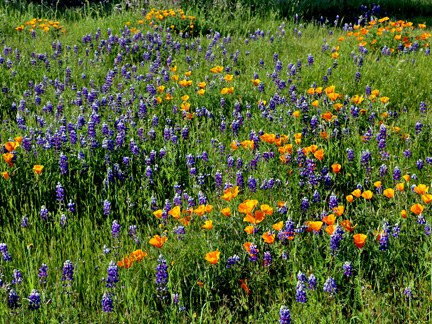 I'm happy to be alive. Life is not easy for me, but I don't think that is the point of life... that it should be easy. Life is not really easy or difficult it is how I perceive it in any given movement. If anything, life is meant to enjoy. I'm so thankful and proud of the Traveling Piano truck that is it been able to traverse the last few days up and down such steep hills with sharp hairpin curves and nothing but switchbacks... almost thirty years old!!! I took some pictures of the wildflowers. There are fields of wild orange and yellow poppies, grape hyacinths, daffodils, iris and other flowers of every color. Someone said, "so you've been riding around playing the piano and taking pictures for ten years." Yea, I have but more importantly... I've been sharing it all with the world. The piano, pictures, my music, experiences, spirit and more... that doesn't just happen. It takes a lot of time, work and commitment... not to mention the effort to constantly deflect worthless perceptions that some people would like to bestow on my life. Especially when they have no value to share with me of themselves. Lol, I hope I don't become a cranky old man!