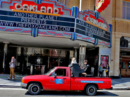 Mexican food, too much over the last few months but this... was the best. And, I would never have seen the Mission district which was awesome even though it was raining. In a few years all the neighborhood character will be gone as I can smell it becoming gentrified and generic as a result of money moving in. San Fransico is such a large city. I guess infatuation with every big city we travel into is a given now. I can't really compare cities or say I prefer one over another. They all have greatness. The traffic and parking are the biggest problems. I hope I can get one good day in here sharing the Traveling Piano. I've contacted a few guys who play piano on the streets here and none got back to me. Other musicians rarely do when I reach out to them and I do not know what to think about that. They could have so much fun using my piano and truck for themselves. One thing is for sure. People are loving the concept more than anywhere else and thats without even knowing what its about with the cover over the piano and without Mo on top, etc... I've had more smiles, thumbs up and people extending themselves to show approval while driving... than anywhere else that I can remember. Onward...