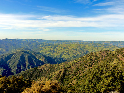 This was another fantastic day. I met many people. This is a destination spot for bicyclists to ride up to. They are maniacs I tell you! Ha, and it is so amazing that the majority of people who bike up are between forty and sixty years old. To be in that good of shape to bicycle twenty five miles mostly uphill, wow! I met a Carmelite Friar and two brothers beginning their vocation. We talked for a while as they were very light hearted and fun! I mentioned how I tend to rant over political issues from time to time and how I know it does little to change anyone or anything. Three thoughts came to mind to the Friar... God hears best the language of silent love... prayer is not to think much but to love much... and, if you think you are seeking god know that he is seeking you ten times the more. Good stuff. He gave me some cash and a gift card in not knowing how much was on the card. Driving the road out on the way down was a totally fun and beautiful ride. Thank God. Before getting back to Santa Clara where we are staying I stopped at a store to get some cleaning supplies for Jeremy's place and to pick up some personal necessities. The gift card was going to help for sure but I thought maybe five or ten bucks worth. My cost was forty and the card paid for it all. I am always amazed when I find myself driving on top of the world!
