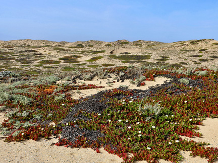 We departed from Jeremy and Amin's place. I feel really sad that Mo will not have the company of Fela, they really enjoyed each other totally. He's not going to find another dog like that to be with for a long while. My friends were very supportive in allowing us to stay, was it two weeks? It felt like no more than a week. We drove to Monterey and it cost $200 for a motel room at Motel6. I'd rather sleep in my truck than pay Motel6 $200 for a room! Used to be that motels would lower prices to fill rooms. Now they scam with greed when the rooms begin to fill up. People are becoming more transient. I ended up driving back inland for the cheapest price I could find... $110. This is not good. The future is not good when I look at how much it is costing for motels, or to rent a place. Please God, help me to find myself a home base, a place to live. Anyway, we had a Traveling Piano exchange with the kid working the motel desk and then I drove to find a place to hang out on the beach. Most of the parks will not allow dogs, so wrong. We got lost in a gutted military single home neighborhood of empty houses. What a waste when there are so many homeless people. After finding a beach, I feel asleep on it in my winter coat for about an hour while feeling grateful and fortunate to be able to do just that. There is awesome color in the sand dunes here.