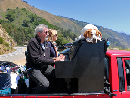 Woke up with bad dreams of women shouting from their houses and apartments complaining about my music outside. I was playing Ragtime music non-stop with a manic state of energy that would not give up, on the street, simply expressing my internal psyche, lol. Still, the rejection hurt my baby feelings. Physically, I am really pushing my energy but want to push myself. I am living a once in a life time opportunity. Really, not just the fact that I only have this one life in the moment, but riding down the coast of California, I may never do it again and always, there is nothing like the first time. I was thinking, "I'm glad I get to see this before it all falls into the ocean from the big earthquake everyone has been saying will arrive any day now for the last ten years. It could not have been a more perfect day with the weather, the world "blessed" came to mind. When people showed interest wherever we stopped, I took the packings out of the truck so we could get in and have a few moments. We met many Chinese tourists today. The scenery, I was thinking "How can the nature I experience on this journey continually get more phenomenal!" Ten years, every time I think it can't get better, it does. I never saw ocean as blue as today, and the contrast with the white suds, the land... oh my God the cliffs and rock... it was mesmerizing. I felt very emotional with gratitude.