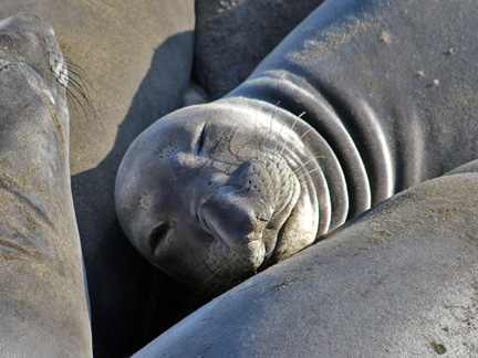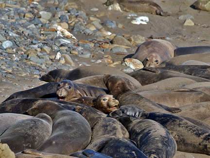 I'm totally exhausted and decided to stay for another night in this motel. Something was pulling me back to the seals and also I wanted to see as much of the coast as possible and not rush. The skies were grey and cloudy. I drove to Ragged Rock and began to hike down the side of a huge cliff. That lasted about ten minutes and I told myself no way... not enough strength or stamina. I drove to the elephant seals and found a place where it was just me and them. Mo wanted to bark at them so I left him in the truck. For about a half hour I just sat with them, four feet from them all around me. They looked at me, I looked at them, sometimes they scratched themselves, yawned, maneuvered to a new spot, stretched and it was basically, we just all chilled out. There was one baby that was the cutest for sure. Back at the truck I created some music and of course people found us. I am really thankful no one was there the entire time I sat on the beach with the seals. I think I have had my fill of nature for now and will head to LA tomorrow. I'm really unsettled about that. It feels like the journey ends permanently today. We shall see. If and when I run out of money, I am going to choose to simply dissapear.