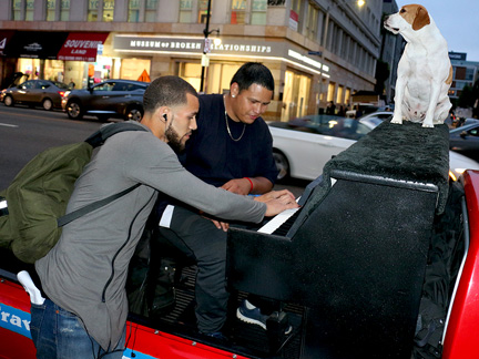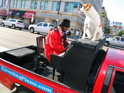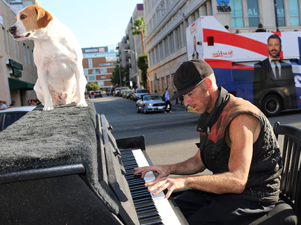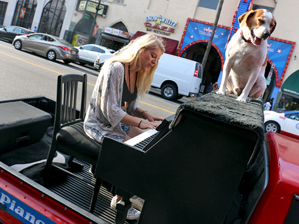 I drove to Hollywood Boulevard to just put myself out there. I've had a goal since the beginning of this journey to get the Traveling Piano onto a talk show for the fun of it, have the world meet Bo, now Mo... and pitch my wildest dream to Oprah. Its about being ridiculous for the sake of fun. Someone told me the Jimmy Kimmel show is taped at night on Hollywood Boulevard but found out it happens late afternoon and I needed to be in the area mid-afternoon for any staff to see me. As a result I just parked on the street again since I was already there. Rush hour traffic was going to keep me there for awhile. The homeless guys I had meet last time gravitated to me like flies on shit. I tried to be nice in telling them to give me some space because they just wanted to be on the piano the entire time and also stood so close and next to Mo constantly that no one else would dare approach. Being diplomatic in situations like that can be a challenge because I don't want to mess up the good rapport that has been created. Also I can appreciate how they are completely ignored by most everyone else. I did meet people, it was not as easy as the last time.
