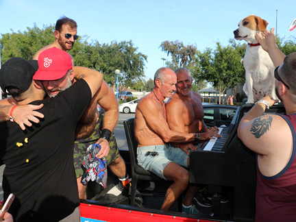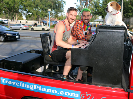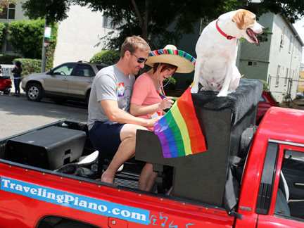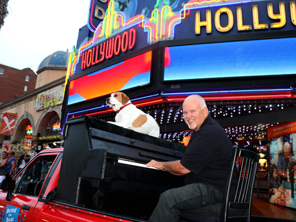 Driving down Hollywood Boulevard in the center of everything yesterday brought back memories of when I first began to perform on the back of the pickup truck almost thirty years ago. Jeez Louise! Every hear that phrase? Playing the piano can be very physical, especially from the back of a truck and last time I did it while moving and performing, that it was almost a year ago for a 4th of July parade back east which by the way, I won't be going back for this year. That will be sad as it is would have been the 20th year. Even though I was offered a large contribution it won't cover the expenses to and fro which would come to about five grand. I don't have the funds to pay the way. Anyway... when I've done that parade over the last few years I practiced for a month before to get my strength and stamina together. I was unprepared for yesterday. Not only did I play music down Hollywood Boulevard, we went back and forth down Melrose Avenue in full sun. It wiped me out. Gotta remember, I'm sixty so... today I got out of bed for a walk with Mo and that was it.