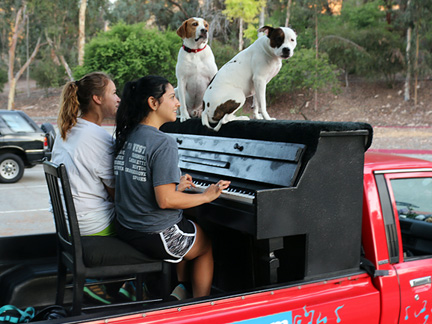 It felt like a day off because I took all pressure off agenda. There is a lot going on in my mind. The courage I get from faith keeps getting put to the test stronger and stronger everyday. I washed clothes, groomed, took a long walk with Mo while listening to Chinese language tapes, filed computer documents and organized some of the truck packings. Towards night in realizing I was feeling insecure I went to spend some time with new people. As I sat listening to people with a lot on my mind the realization that I only have to live today felt right. One day at a time as it has been said and also someone mentioned to everyone where I was, "we're not a glum lot." Then it hit me, "Danny, you are fucking glum!" I was able to see myself and I was way too glum, lol. Don't wanna be glum. I'm not doing my job if I'm being glum, but then again it IS a day off. My natural state is glum, thats why I need to be around people. Glum, Driven or Fun... thats me. I think I need more practice in being fun with myself, by myself or at least other than only with the Traveling Piano's mission of Fun, Friendship and Respect.