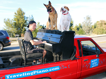 With everything going on in my head, Traveling Piano time still happens even if only once and for a few moments everyday. Its always first and foremost consciously or subconsciously on my mind so if an opportunity arises at anytime I take advantage of it. On some levels I need it in a way I guess like someone needing a cigarette break from all of life around them. During the course of interacting with people, if anyone shows interest, I offer to manifest some magical, musical fun, friendship and respect for them. It can be with room service people at a motel where I am staying, someone at a dog park, when I'm asking someone for random information like directions on the street, etc... Its going to get real hot in LA for the next few days so I need to get out because the piano and equipment will fry. There is not much shade in the places where I've been. In my mind I feel cornered with no way out concerning what to do. Those feelings turn into anger, frustration and a desire to just shut down. Its not like I need any suggestions, I've covered all the options and bases in my head. Using all the rest of my finances on motels is very disturbing but I've found no suitable place to rent or share.