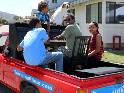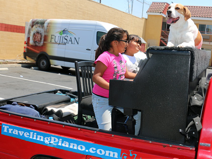 Too bad, because the landscaping around the place was really nice and comfortable but the inside is where it matters. Across the street I found a place that cost twice as much, not much better but... better enough. When I was leaving the last motel there were two little girls who spend their days there while the mothers clean the rooms. I knew they were curious about the piano truck and wanted to interact. A voice inside my head kept saying... "extend yourself Danny, extend yourself." So I took most of my travel bags out put them all on the ground next to the truck and then called them over so we could all have some fun. All kinds of guys working on the road stay in these motels and I'm always amazed at how appreciative and respectful they are of me and my music. It feels good to get out from LA, I was in there for a long while! If a place came into my space to stay there, I'd be back in a second.