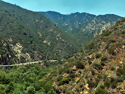 We are staying in Thousand Oaks and drove in, around and through the Santa Monica Mountains to get to Malibu a place I always wanted to go because I've heard so much about it all through my life. It was a tourist beach town... once you've seen a thousand of them, you've pretty much seen them all but still, glad I did it. Driving through the mountains to get there was a surprise and really nice. It felt good to be back in nature. A fog was over them I think because there is a huge 6000 acre fire roaring out of control up north and not far away. It was smokey where I am staying last night. In Malibu of course there was no place to do anything without paying money like parking, enjoying the beach, etc... and I'm not interested in all the commercial hustle and bustle anyway. All the "public" state parks charged money.