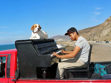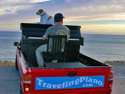 We drove north and found a few public vista points were I created music and shared the Traveling Piano. It feels so good to work, especially at the beach and around all the natural scenery. We met people from Mexico, Turkey, Italy... someone who had just begun a three month journey in a van, another older guy who just finished a 2,500 mile motorcycle ride, a couple who just got married a few weeks ago and as a result already has a baby on the way, locals just hanging out... it was all exhausting and very worth it. People were noting the passion for what I am doing and I thought about how I communicate my spirit with passion through everything I care about. With the Traveling Piano I work to convey only Fun, Friendship and Respect. While here in the blog it gets a little more personal and then socially with people online its the whole kit and kaboodle whether people want it or not.