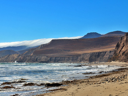 I drove to Jalama Beach today and took a walk on the sand with Mo. There was no one else around and that was just so fantastic. Getting a grip on what is going on in my life is very difficult. Enjoying nature for my life is so very important. Sharing it all is just as important. My goal was to force myself to wait for the sunset. I have not done that for a while. There was a little pull off on the road above the cliffs and I sat and waited with Mo. It has been a very long time since I have just sat doing nothing but enjoy the ocean waves, the sky, the sun and beach... normally I walk and/or take pictures. A few days ago at another beach I was able to do it for about a half hour. For about a half hour before the sun set I created music for myself. A few cars, rv's and trucks drove by but the road does not allow for people to absorb what they are experiencing until they have already passed.