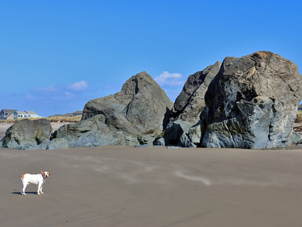I'm doing what I enjoy right now. I'm doing what I'm doing, because I can. Most people would be freaking out about what is right around the corner for me and if you read this blog you know how I can go there... but not now. I'm processing pictures from the coast of Oregon in March. It feels good to get the work done and I really want to get update. There are some amazing photographs. I wish I had it in me to publish some of them for money. Hopefully that will happen. I posted three pictures from Oregon for todays blog. It was a lot darker and cloudy and rainy compared to here now in California on the beach where it has not really rained for months and is sunny everyday. I'm living the "dream" when it comes to the beach this year. Mo and I went again today and I took nothing with me but his leash. My camera is in a shop, ugh the cost for repair will be high. We meandered on the beach sometimes next to and at the bottom of high cliffs, sometimes down by the water through ocean waves washing up between my feet, around boulders, in wet sand, in dry sand. Every once in a while we would stop and lay in a shady cove or on top of a long narrow rock jutting out into the water to lay in the sun.