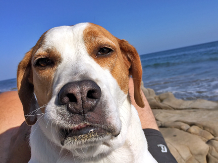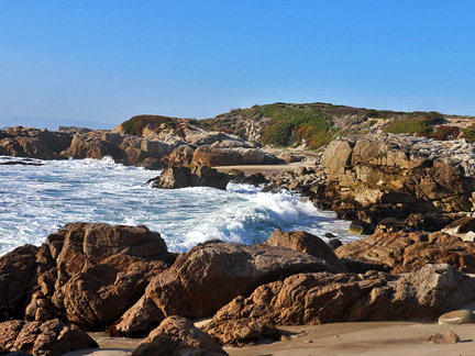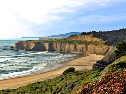 I said to myself, get to the beach, it will be the last time, it is why you are in this area. No people just nature with sand, wind, coves to duck into, waves, suds, ocean water, high cliffs, Mo, sun, the tide going in and out, rock formations, seals, dolphins, warmth, coolness, sticks, shells, different colors and textures of seaweed, clear blue sky, smells, distance, openness... just Mo me and the earth. I thought... if this is the reward for all the work I have done, just this, today and now... it is enough. In the picture I'm posting today, see the beach down there... that is where we sat in different spots, in a daze of love and peace with my mind wanting to interfere but losing out... for hours.