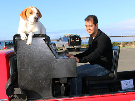 It is a very... I don't know how to describe it, my life these days. I've shut down thinking about what will happen and the feeling of need to work. There is a feeling at times that something very good is about to happen so I have no need to worry and then... there is the usual anger, issues, etc... but today Mo and I went to the beach and meandered and sat and laid and played in the sand and got dirty and wet without a care in the world. I'm so amazed that I can just do nothing for hours. Of course the stimulation of everything that is the ocean like the beach, rocks, waves, sand and wind, all of that keeps my mind occupied with gratitude and love of nature. The thought came to me that I have had the best year of my life so far with the Traveling Piano. Ha, that does sound strange with all the uncertainty but hey, thats what I was thinking. Life long dreams have played out like getting to San Francisco after thirty years with the piano on the truck and also playing music while driving down Hollywood Boulevard in Los Angeles and most of all being in all the nature of the Pacific Northwest specifically spending time in the redwood forests. It has all been just very great for me. Also, I thought that today may be the best day in my life to date. It probably had something to do with being "present" in the "moment." There can be nothing better or worse in the present moment. The experience is the best that a person can have in life. To get to the beach, first we must walk along the edge of high cliffs where birds fly along side of us over the water. Wow, to be walking hundreds of feet in the air with birds flying right alongside of you is just so awesome. Being alone on the beach with Mo, no one around, I know I say it over and over... its just bliss.