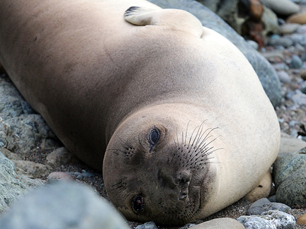We've been living in a motel and I'm really seeing the underbelly of it. Everyone who works here is just working, there is no management no order, no system. Its like a bunch of kids in a neighborhood raising themselves together. Housekeeping is always pickup up pieces, finding broken solutions for what is broken, its almost impossible to find a towel that isn't stained, basic supplies were ordered two and a half months ago from corporate and have yet to arrive. Four housekeepers called in sick today so there was one person cleaning thirty rooms, lol. I found the manager washing linens so no one is booking rooms or at the front desk to take calls. Its like this all the time. At one in the morning when I let Mo out to go to the bathroom, six rooms had doors left open and about eight had lights on, windows open and half cleaned with linens piled on beds, etc... it all truly is amazing. Strangers who don't pay go into rooms and just use them. The maintenance guy literally had to kick a woman in the butt to get her out of the room and threw here pocketbook into the street. She refused to leave because she was watching television. Yep... this is the life! Todays picture is of an elephant seal I spent time with a few months ago.