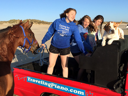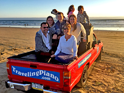 Friday night parties were getting set up with campfires, people camping, dinners, etc... I was right at the waters edge and it was kind of cold. The wind was strong in a way that the sound did not carry very far which was fine by me. I created music with people hanging out, two girls were riding horses in the water back and forth in front of me with people playing in the water... there were really no boundaries and limits with anything for anybody in doing what they wanted. Whats important about that is, there were no problems as a result and if one did happen it should not discount all other times where no problems exist. As I created music in a surreal way the two girls on their horses rode up to us in slow motion and then got off the horses to try out the piano for themselves. A family on holiday from Wales came over. An older couple danced on the beach in front of us to the music as the sun set. The energy was amazing with the wind, the cold, the people, animals, ocean, mo with me on the truck and the music. The beauty, the time was all very surreal. Wet sand in the piano, in the truck, in the speaker... there's a price for everything but sometimes its just worth it.