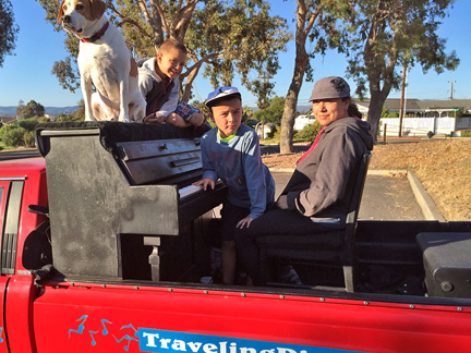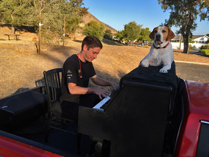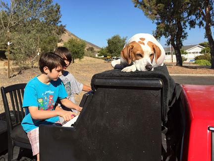 Getting my head out from under the covers today was a little of a challenge. It was time to pay for another week where I am staying. There is enough financially to get me to the end of the month, ship the Traveling Piano and my computer hard drives full of data back east to a friend who will inherit it all and enough financially to ship Mo to a friend up north to take care of him should he need someone to take care of him and... thats it. To reach year thirty in 2017... of full time working with a piano in the back of the same pickup truck will take a miracle me thinks. How do I tell people that I am desperate without sounding desperate? Fact is, I don't feel desperate. I've never been someone who deceives to get what I want or need in relationship with others. The idea of it has never sat well with me, ever. There was a tendency earlier in life to be over dramatic, but now I'm always on the lookout for that behavior. As someone who deals straightforwardly with others well, thats not worked so well either. It is the only way I can be. I've never felt so at the end of the road as I do now. There are feelings of disappointment but not with myself. I feel really amazed, grateful and totally accomplished about myself. Mo and I went on a hike into the mountains and wow was it difficult but worth it. I must have looked so bad with my breathing, Mo too... that people who passed us offered water! Lol, I took it. Then we met a family and that led to the Traveling Piano once we got back to the truck.