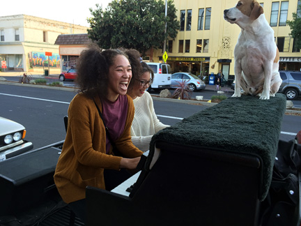 A young guy we met in the park the other day emailed and asked if I would visit downtown so his friends could meet us and spent a short while with the Traveling Piano. Of course! First, I played in the parking lot of the motel where we are staying for housing keeping, the motel manager and maintenance guy. A few locals came by. Downtown while with a bunch of younger guys and gals I was thinking about how wonderful it is that Nathan the young guy who contacted me, how he wanted to share his experience of the Traveling Piano in person with everyone he knows. It wasn't to show off, it was to genuinely share his love. A person driving by thanked me for what I'm doing without even really knowing the story. There are those who think this journey has been just all a jaunt, that I've been working a free ride in life, sharing the Traveling Piano, hanging out on beaches, etc... Those kind of people are just assholes.