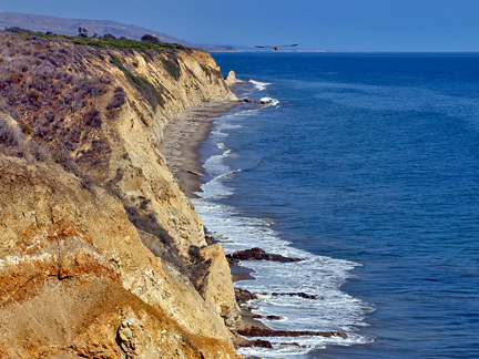 Mo and I went to the beach. We found a small, unofficial pull out area to park in along the highway and it took awhile but was able to find a trail down from the cliffs. I feel so complete at the ocean and on a beach we have found. Tall cliffs behind me, beach with coves, rocks, smooth sand, very few people, ocean waves, no supervision, no homeland security planes or helicopters... (don't want to jinx myself with that last mention) When I pulled into the parking area there was a guy heading for the beach and I asked him how to get there. On the way out our paths crossed again and we ended up having a Traveling Piano moment. After creating some music for him for only a minute or two, he said the music got him choked up. Nice!
