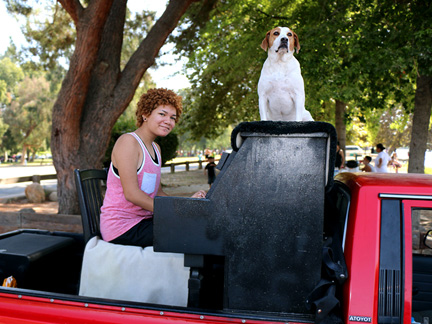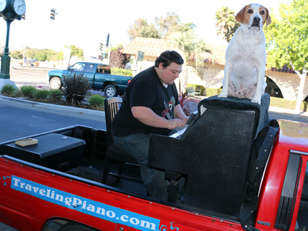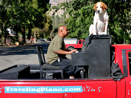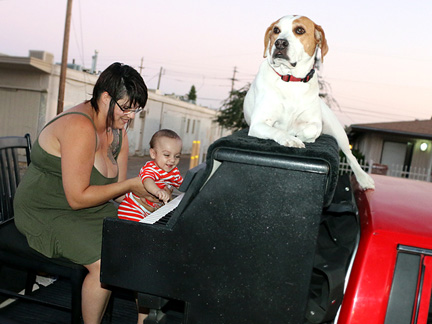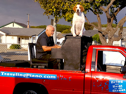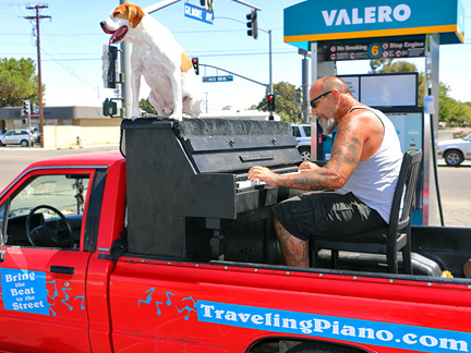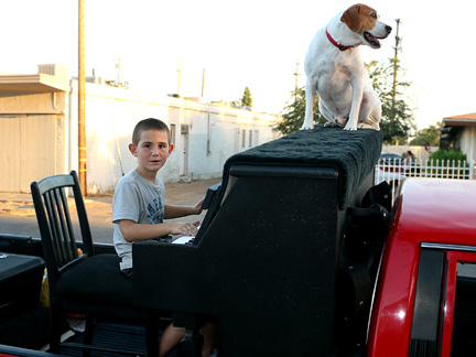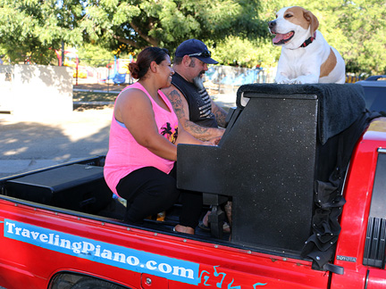We went to play on the streets of Oildale, California today. Some people live in projected fear, others live in real fear. In this place, there is reason for "real" fear. People freaked out over me taking pictures. Half the neighborhood got up in arms about it... a stranger on their turf taking pictures. They were coming out of everywhere to protect each other in not knowing what was going on. After I got called out, it was time to be very careful. It was all fun with a lot of people too... while keeping constantly aware. Some began to trust with Mo being there and then I kept the music real nice and mellow which either put people at ease or they didn't know how to respond with it. The original plan was to stay and hang out with some friends after it got dark. No way I could leave the truck alone even for ten minutes even with the cover snapped on, especially with everyone knowing there was a speaker in it. Everyone around agreed. Mo was so happy to get to work hanging out on the piano that for the first time he almost jumped out the drivers side window to jump up into the back of the truck before it was time. I was telling someone that I'm at the end unless support comes through. She said but you look like your having so much fun! I said, yes... when I'm with you, my down time is spent struggling to survive.