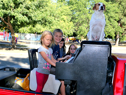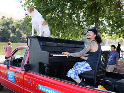 The smoke from fires everywhere has pretty much cleared from the mountains. Mo and I spent time in the small communities of Mountain Mesa and South Lake today. The areas were almost completely empty. There was a 70,000 acre fire storm that swept through in a matter of forty five minutes a few months ago. One hundred homes where totally burnt to the ground in that short time! One square mile just about completely leveled with burnt autos, melted metal and burnt tree stumps. It was devastating to see, impossible to imagine. You hear about these tragedies in the news and think little about them. When you are in it for yourself the experience is completely different. What was most amazing like with other places for example after the Tornado in Joplin Missouri is how the storm seems to pick out certain houses while not touching others. I pulled he truck up to a spot where restoration workers were ending the day and a woman from the house next to them was outside. She has heard about the Traveling Piano.