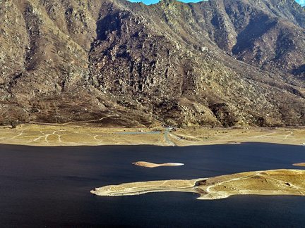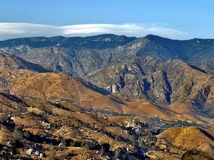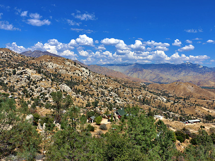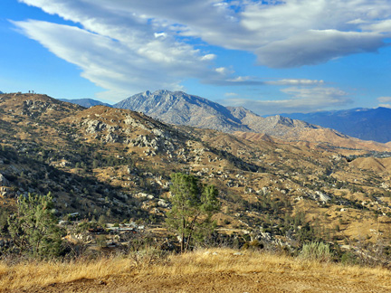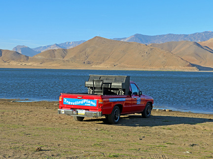 I stopped to get some gas and a guy walked up asking if an old man can still learn the piano. He had always wanted to play which of course led to his playing right there at the gas pump. We had fun together. It was a good start for the day. Mo and I drove about an hour and a half north and a little east of Bakersfield. We headed to the Lake Isabella area to check out an inexpensive place to rent and share with a guy who has a modular house in the mountains. We connected through Craigs list which is always a chancy endeavor. The scenery was so spectacular that I got choked up. TIt was a very, very steep drive up a dirt road and the area very isolated and the view, the view, the view... in the desert and hot but the view is not a view very many people in the world get to see with everyday living. The trips up and down the hill with the Traveling Piano would need to be kind of rare, and it can get slippery because its so steep. It would mean hunkering down up there, not getting out and about very often. He has internet.