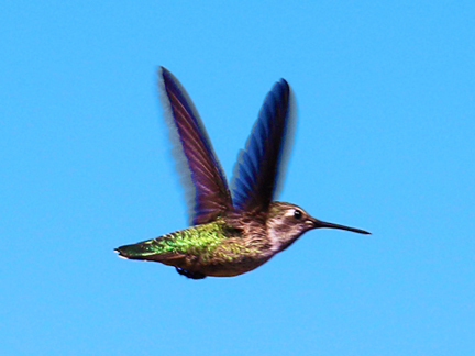A red breasted hummingbird stopped in mid air, directly in front of my face three feet away from me for like 15 seconds today!!! Here is a picture of one in flight from a few days ago. Other than that I'm laying low.