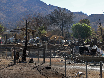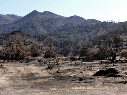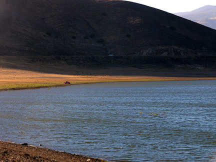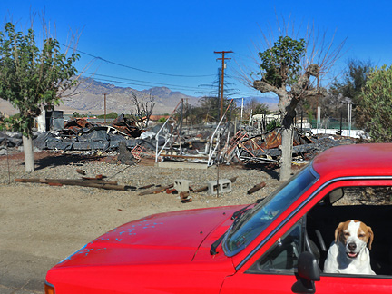 She told me how she is filled with guilt that her place survived. Her parents house next door burnt to the ground as well as every neighbor around her. Her place... untouched, not a scorch. At first she was really interested in the Traveling Piano but then something spooked her and she just went into her house fast. I don't know if it was the emotion from the music, fear of interaction or need to be guarded for some reason. It is not easy to connect in rural communities as an outsider. It always helps to have someone from the inside to make introductions. Needless to say, people are totally traumatized here. We talked, I played some music in the area and moved onto the Lake Isabella lake bed and created music in two different spots. Really, the setting was phenomenal. We parked way down on a clear flat area far from the road at the waters edge with mountains in the background and at another spot, the same as the first but higher up in the air. It felt good to get Mo out some. We walked... and both needed that.