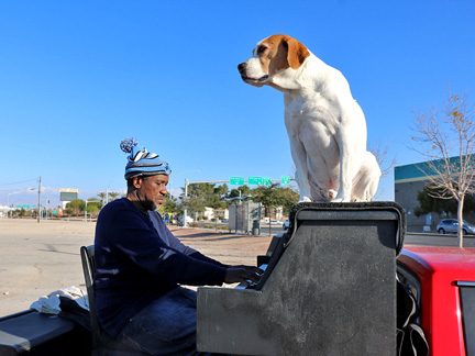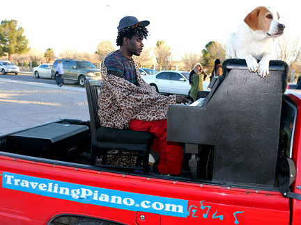 I went to a council meeting of a non-profit arts center a few blocks away called the City of the World Art Gallery. It was the first place I was drawn to here in Las Vegas and it has called to me several times since. The director invited me to meet everyone and just explore some ideas. 100% of my experience with the place and everyone I have met feels full of potential. Presently, I must simply feel the potential and stay out of the way concerning exactly what that potential means or may be. Ross, the director asked me to put down into writing exactly what my ideas are. Argghhhhh... that is so difficult and time consuming for me to do! Breath danny, breath. I'll do what is neccessary. It just must be done while feeling easy and smooth and relaxed... focused. I spent time outside with the Traveling Piano and several homeless people stopped by as well as some of the poorer neighbors. Some I've met now several times.