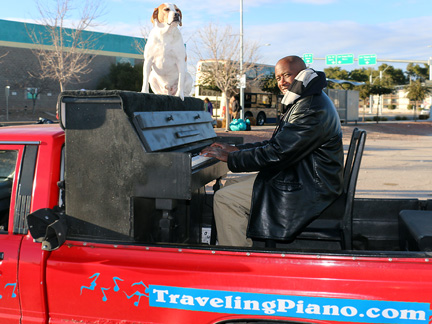 The one guy says, "I love you man" and I really understood where he was coming from. It comes from a place of treating each other equal as human beings along with our differences and quirks. Respect is key. Also, I'm setting up limits and boundaries from the start. I cannot give anyone in my neighborhood money and must stay Traveling Piano centered, not personally centered. Also, I want to be present for everyone so I need to keep the relating moving from person to person homeless or not. Creating music and just playing around with the piano today was fun! A media guy appeared with his camera. That always makes me nervous. Defining myself and what I do for people before they do it for me has always been a challenge. Now settled in one spot, this will be very important from the start. Myself and my work encompass many facets and I must remember to focus on all I am verses what I am not.