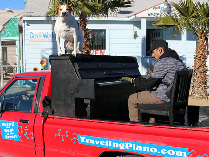 Really, the end of January. I'm signing a lease for seven months. For my entire life back east in Philadelphia I had a dream of living somewhere else. I've always wanted to live in at least one other place before I die. Other people would do it and that always blew me away. How could they do that? What courage it must take. The last of six kids, every sibling got married, moved out and no more than a half hour away from the home base. With about forty nieces and nephews, one moved to Hawaii, thats it. Since I sold my house I've had a few home bases over the years but they were never secure homes for me. So tonight I realize my dream. I now live in Las Vegas, Nevada. Its official and amazing and on the strip! It took sixty one years but who cares... I did it while still living. Thank you God... and friends who have helped and who are presently helping. This would not be without help from others and my sense of self to be able to ask for help. It took a good 50 years of hard work to get the sense of self that I have. I'm looking forward to contributing to my new community with the Traveling Piano in bigger ways then I have been doing or have ever done anywhere in the past. I've thought about living in NYC, LA, Miami, Chicago, Seattle but never once gave Las Vegas a thought and... its a perfect place for me.