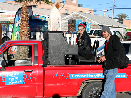 Las Vegas has a first Friday of the month celebration year round and it happens a few blocks from where I now live. Ninety percent of the people I have talked with since I have arrived here have brought up the event as they all think the Traveling Piano would be perfect for it. Now, I began working on this truck before First Fridays were invented, before First Night's on New Years Eve, I began at the dawn of Sponsorship so... I pretty much knew that it would not work for the event but I went anyway to check it out. As I suspected there were policies and regulations, permits, agenda... no way was it a neighborhood gathering as the purpose first intended. Of course it was sold as a way to bring people downtown into the arts district but as always happens. it is now more about being an event then people hanging out. There was lots and lots of art in the galleried art buildings and that was super fun.